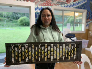 Tukutuku Creation Workshop with Ta Piri o Te Rangi Pirikahu. We are creating a tukutuku panel as part of our connection to Alaska through the Kuaka – the bar-tailed godwit. Tukutuku is a woven panel found within communal houses as part tribal histories, often conveying connections to the natural world and beyond.